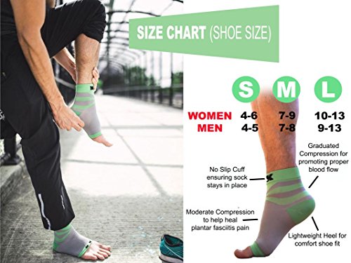 Our plantar fasciitis compression socks will help maximize the circulation of blood to promote quicker recovery and less soreness. Reduce plantar fasciitis with greater arch support and slight stretching to help keep the foot pain free. 0