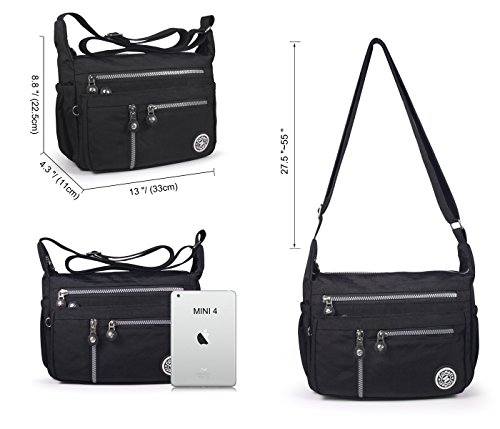-. Feature : Waterproof oxford fabric &classic hardware. / 3*front zipper pockets, 1*back zipper pocket, 2*side open pockets organize most of your daily necessities. / Long-lasting fashion, nice handbag, travel bag, shoulder bag or cross-body bag. / High-quality Oxford fabric with fabric lining, sturdy, durable and waterproof.