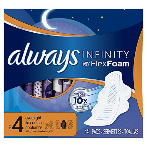Have confidence during your period! Always Infinity Extra Heavy Overnight pads with wings have a 50% larger back, so your period will be the last thing on your mind.