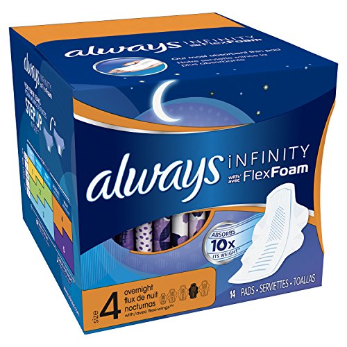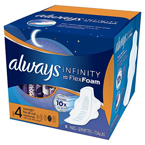 Always Infinity Maxi Pads With Avec FlexFoam Overnight 14 count ea. ( Pack of 4)