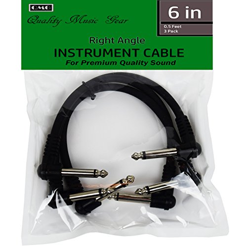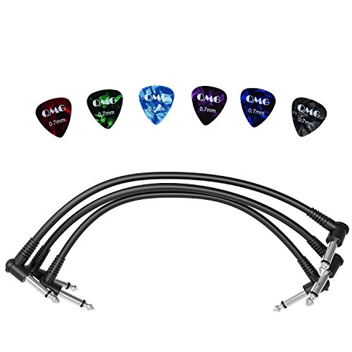 Guitar Instrument Patch Cable for Premium Quality Sound 3 Pack 6 inch; Right Angle Plug Perfect for Pedalboard; Ideal and Clear Sound: No Lags, No Clips, Perfect Transmission with 6 Free Guitar Picks
