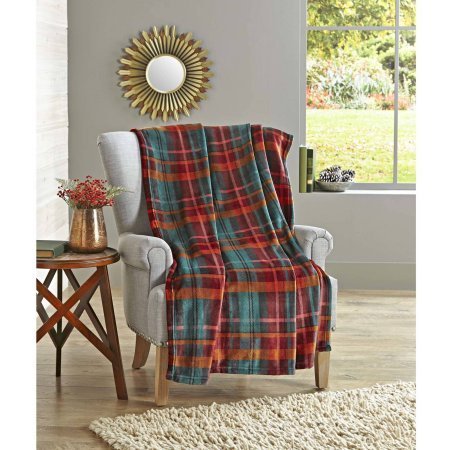 Better Homes and Gardens Teal Plaid Oversized Velvet Plush Throw 50inch X 70inch