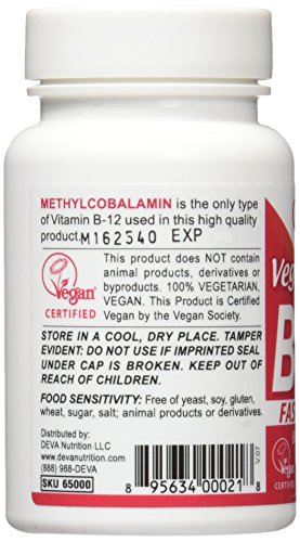 -. Feature : DEVA Vegan B12 Sublingual is 100% animal free, and guaranteed for purity / It is an especially important vitamin for maintaining healthy nerve cells / Vitamin B12 is a water-soluble vitamin that is stored in the liver / Vitamin B12 serves to control homocysteine levels / DEVA Sublingual Vitamin B-12 contains 100% Daily Value of Folic Acid and Vitamin B-6 to help reduce blood homocysteine levels