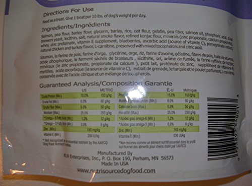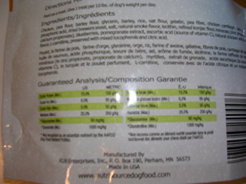 -. Feature : Bundle of 2 - 6 oz bags, 1 Salmon Skin & Coat and 1 Chicken Hip & Joint / 2 Delicious Proteins, Real Salmon & Real Chicken / Hip & Joint enhanced w/ Glucosamine & Chondroitin, Skin & Coat enhanced w/ Omega3 & 6 Fatty Acids & Zinc / Both contain Blueberries and Pomegranate / Made in U.S.A.