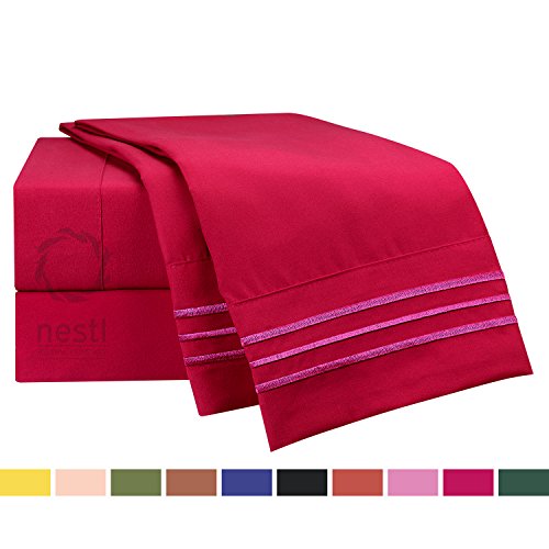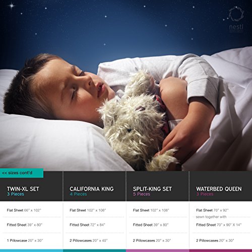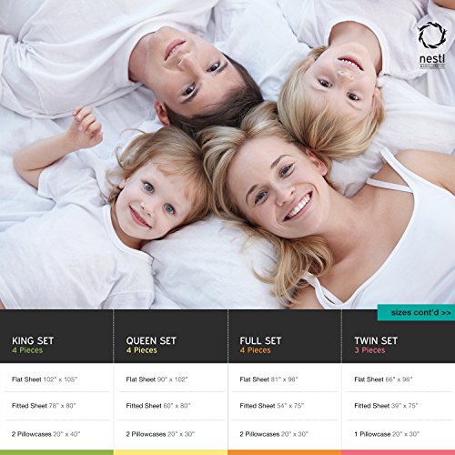 - Feature : Nestl Queen-size 4pc set: flat sheet 102"x90" (259x228cm), fitted sheet 80"x60" (203x152cm), 2 pillowcases 20"x30" (50x76cm) 100% Satina for luxurious thickness, softness and warmth Breathable & hypoallergenic, stronger and more durable than cotton, with the strongest stitching to prevent tears Deep-pocket, fully elasticized fitted sheet for mattresses up to 18 Inch thick Wrinkle- and fade-resistant, cold-water washable and quick-drying / HEALTHY ENVIRONMENT, Nestl microfiber yarns and ventilated weave make it hypoallergenic and antimicrobial, Unlike cotton that can harbor allergens, mildew, and even bed bugs, Nestl microfiber repels contaminants and mites, preventing them from finding a home in your bedding. Allergy sufferers breathe easy and wake up feeling refreshed instead of congested, and those with sensitive skin or conditions like eczema rest in a healing environment instead of being further irritated at night / LUXURY MEETS PERFORMANCE, Nestl microfiber superior performance and luxurious feel begin with yarns that are even finer, longer, and stronger than silk. Nestl microfiber yarns are finished with a meticulous brushing and conditioning process before being woven into premium fabrics, then undergo an additional brushing to attain the lustrous, ultra soft finish sought by connoisseurs of fine linens / VIBRANT, FADE-RESISTANT COLORS, Nestl microfiber is made to look as good as it feels. It's exceptionally color-fast, and even after years of regular use will look as vibrant as the first night you enjoyed it. The pigments used to infuse Nestl microfiber fabrics with color are based on the same gentle oils used in bath and beauty products, and no bleach or other harsh chemicals are required to remove stains from Nestl microfiber. / EASY, ENEGRY-EFFICIENT CARE More durable than the highest thread count cotton sheets, Nestl microfiber fabric couldn't be easier or more energy-efficient to clean. Its ultrafine yarns and micro ventilated weave repel sweat and stains, making a short cold-water wash and a quick tumble dry on low heat all you need to keep Nestl microfiber linens fresh and clean. Nestl microfiber won't weaken or tear even after years of use, maintaining a smooth, wrinkle-resistant that only improves with time.