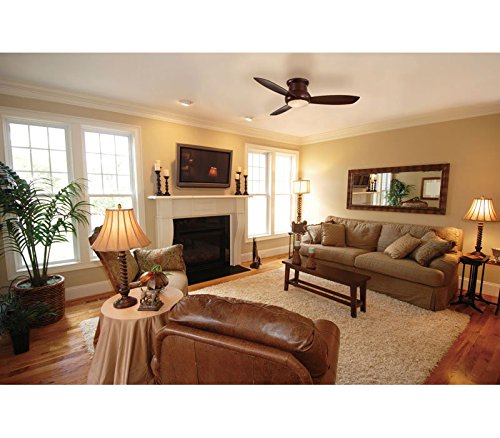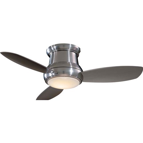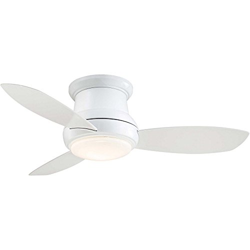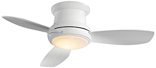 This white finish ceiling fan is ideal for low-ceiling applications. From the Minka Aire ceiling fans collection, the 44" Concept II flushmount fan has a contemporary look, and includes a full function hand-held remote control, making it easy to control. It features an integrated white opal glass LED light that allows for ambient lighting. Includes cap for non-light use.