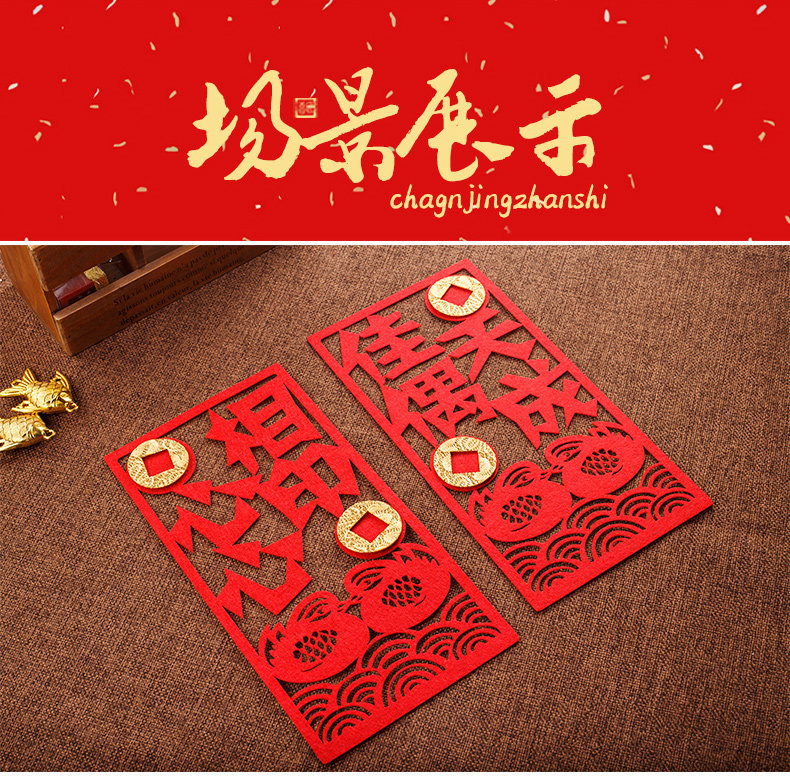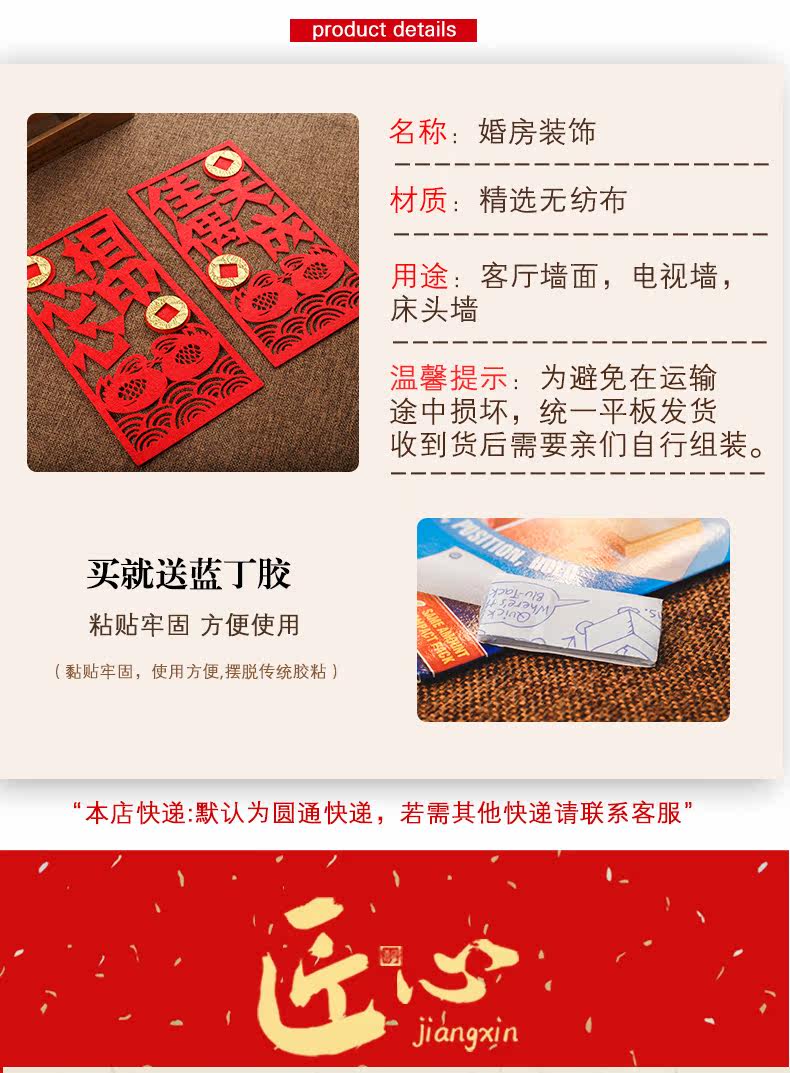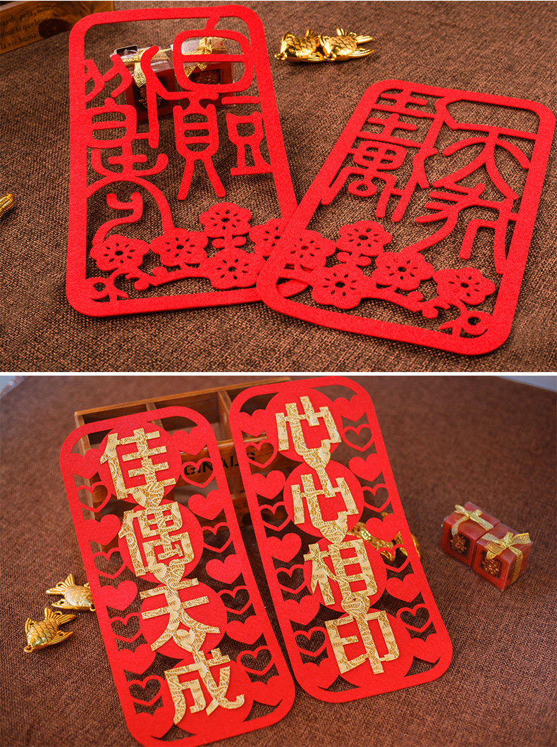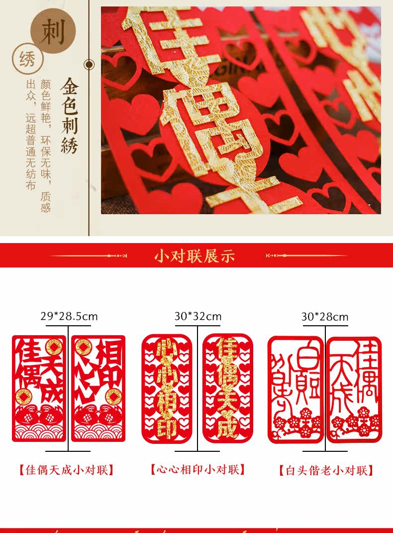 结婚庆用品婚房装饰个性创意无纺布喜字小对联贴墙门窗花贴纸