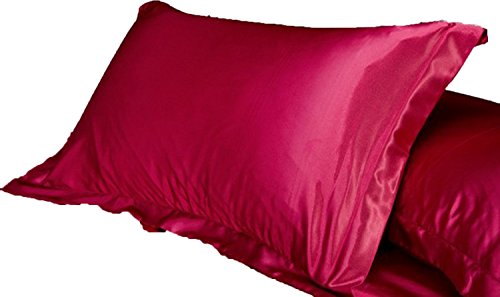 FLC,100% Silky Satin Pillow Cases Covers Shams Ultra Soft and Smooth-Wrinkle, Fade, Stain Resistant set of 2 (Standard/Queen, Burgundy)