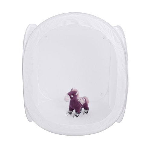 - Feature : It has a large removable front opening to allow for easy studio images in your home or office. / Made from translucent light diffusing white nylon fabric, detachable front door cover with slit for camera lens. / The studio kit has a standard with a custom carrying case with both shoulder and hand carrying straps. / It filters the light and eliminates reflections and shadows completely. / Item Size (CUBE, cm/inch): 80 / 32