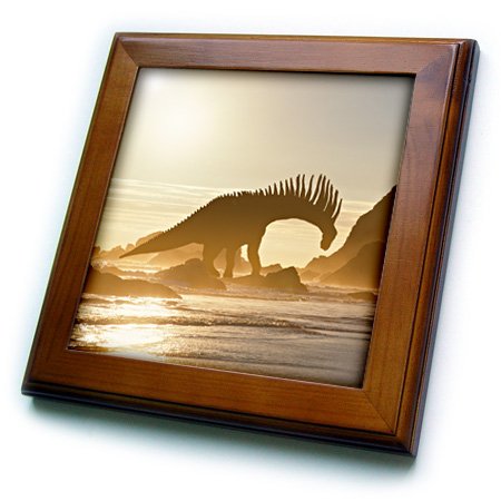 3D Rose ft_249642_1 3dRose Concept of Amargasaurus Dinosaur on Ocean Shore. -Framed Tile, 8 by 8-inch