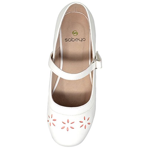 -. Title : SOBEYO Kids Dress Shoes Mary Jane Closed Toe Girls Low Heel Flowers cut out accents SBO-JANE-46