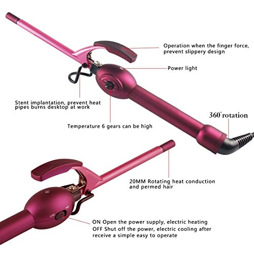 6-speed adjustable temperature: Temp from 80℃ to 230℃ by rotating the button, 80℃-110℃ for fine or chemically processed hair, 140℃-170℃ for easy-to-curl or normal hair, 170℃-200℃ for thick or wavy hair, 200℃-230℃ for dense or hard-to-curl hair