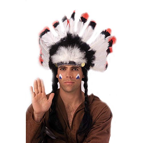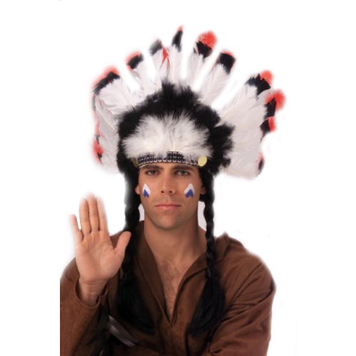 -. Binding : Apparel -. Brand : Rubie's -. Color : White -. Department : mens -. Feature : White, black and red feathers / One size fits most / Look to rubies for all your character accessory needs / Rubies costume company is a family owned business based in new york with more than 60 years of experience bringing children and adults the costumes and accessories they want to halloween and year-round dress up -. Genre : Hats & Headwear -. IsAdultProduct : 0 -. Label : Rubies Costumes - Apparel -. Manufacturer : Rubies Costumes - Apparel -. ProductGroup : Apparel -. ProductTypeName : ADULT_COSTUME -. Publisher : Rubies Costumes - Apparel -. Studio : Rubies Costumes - Apparel -. Title : Rubie's Costume Co Deluxe Native American Headdress