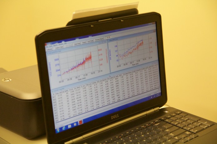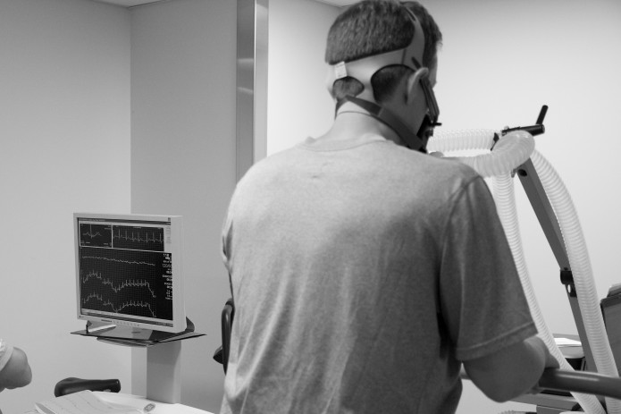 We also looked at metabolic data using pulse oximetry, electrocardiography (ECG), and VO2max testing. Subjects underwent cardiopulmonary exercise testing (CPET), which involves running on a treadmill with gradually increasing speed and incline until reaching exhaustion.