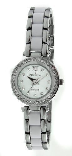 -. Title : Peugeot Women's 7073WT Acrylic Link Crystal Accented Silver-tone White Watch