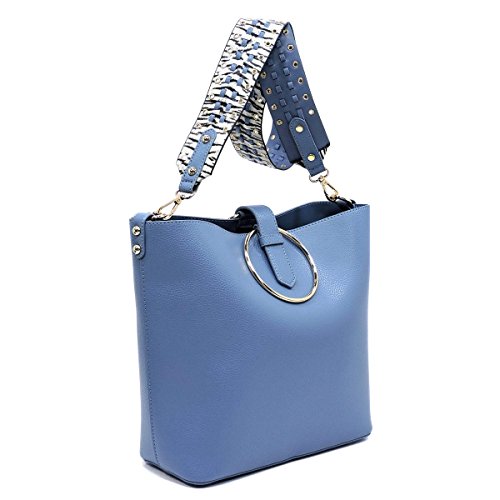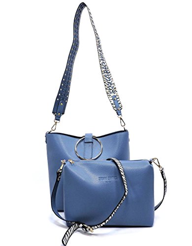 Studio : Western Fashion Publisher : Western Fashion Binding : Apparel Product Description New! Like Dreams Tigra Crossbody Tote w/ Pull-out Pouch- Blue Item #: H16101538 ? L 13 * H 10.5 * W 4 Trendy versatile Tote has an edgy thick animal print strap with gold eyelets on the edges that highlight the smooth vegan leather body. Has a ring detail hardware that can be use a handle or left down for an essential detail. The spacious interior has a large pouch that can be detached and used as a crossbody with its own animal print strap. ? Quality Faux vegan leather ? Gold-tone hardware ? Detachable shoulder strap ? Exterior: 1 zipper pocket ? Interior: 1 large pouch inside pouch 2 media wall pocket and 1 zipper wall pocket. Lined with fabric. 0