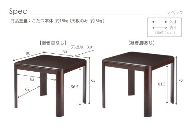 サイズ(cm):幅80x奥行80x高さ70(65)・約18kg