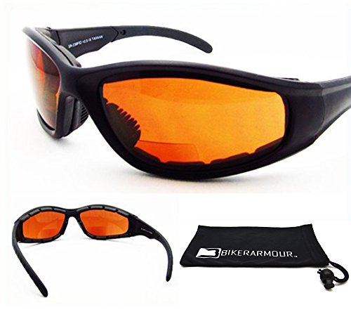 -. Title : Blue Blocker HD Vision Motorcycle Bifocal Sunglasses Padded. 1.50 ANSI Z87.1 Safety Lenses & Microfiber Cleaning Case.