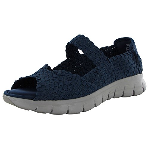 Enjoy walking every day wearing the SKECHERS Synergy - Sunday Stroll shoe. Woven stretch elastic bands upper in an open toe slip on sporty casual mary jane comfort sneaker with Memory Foam insole.