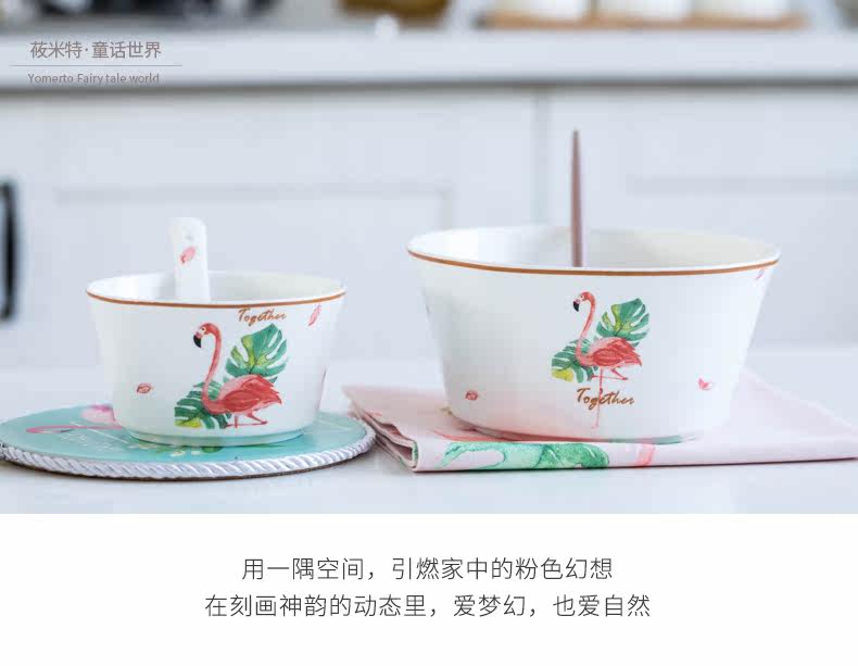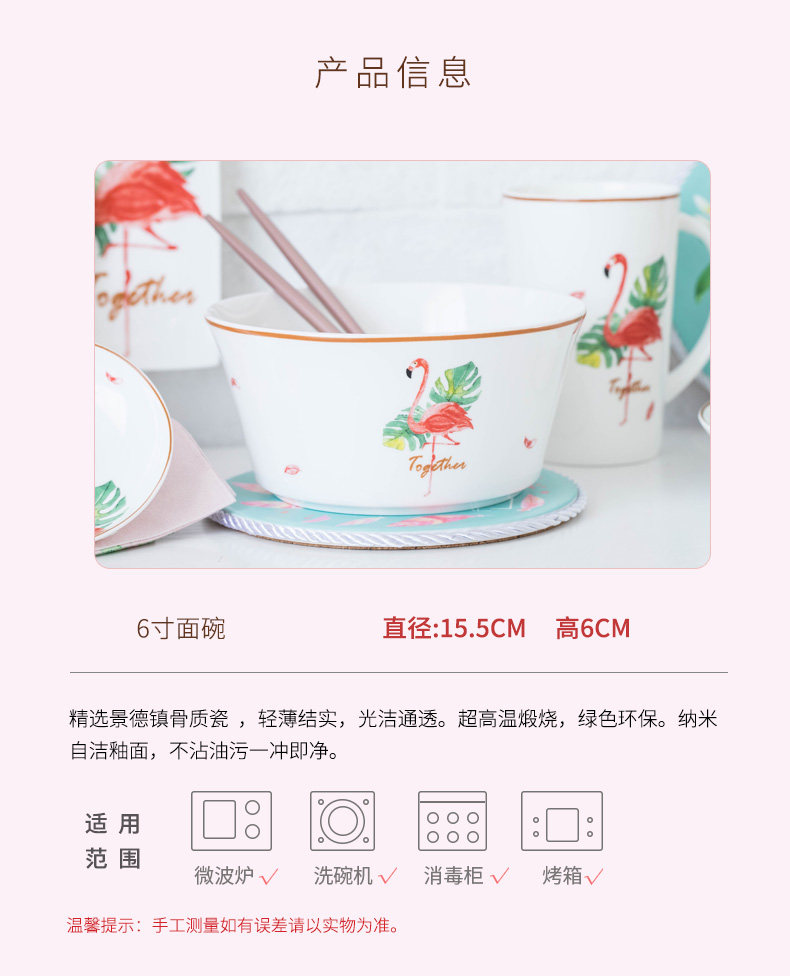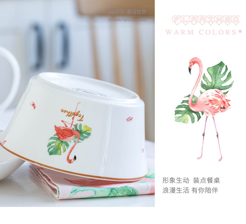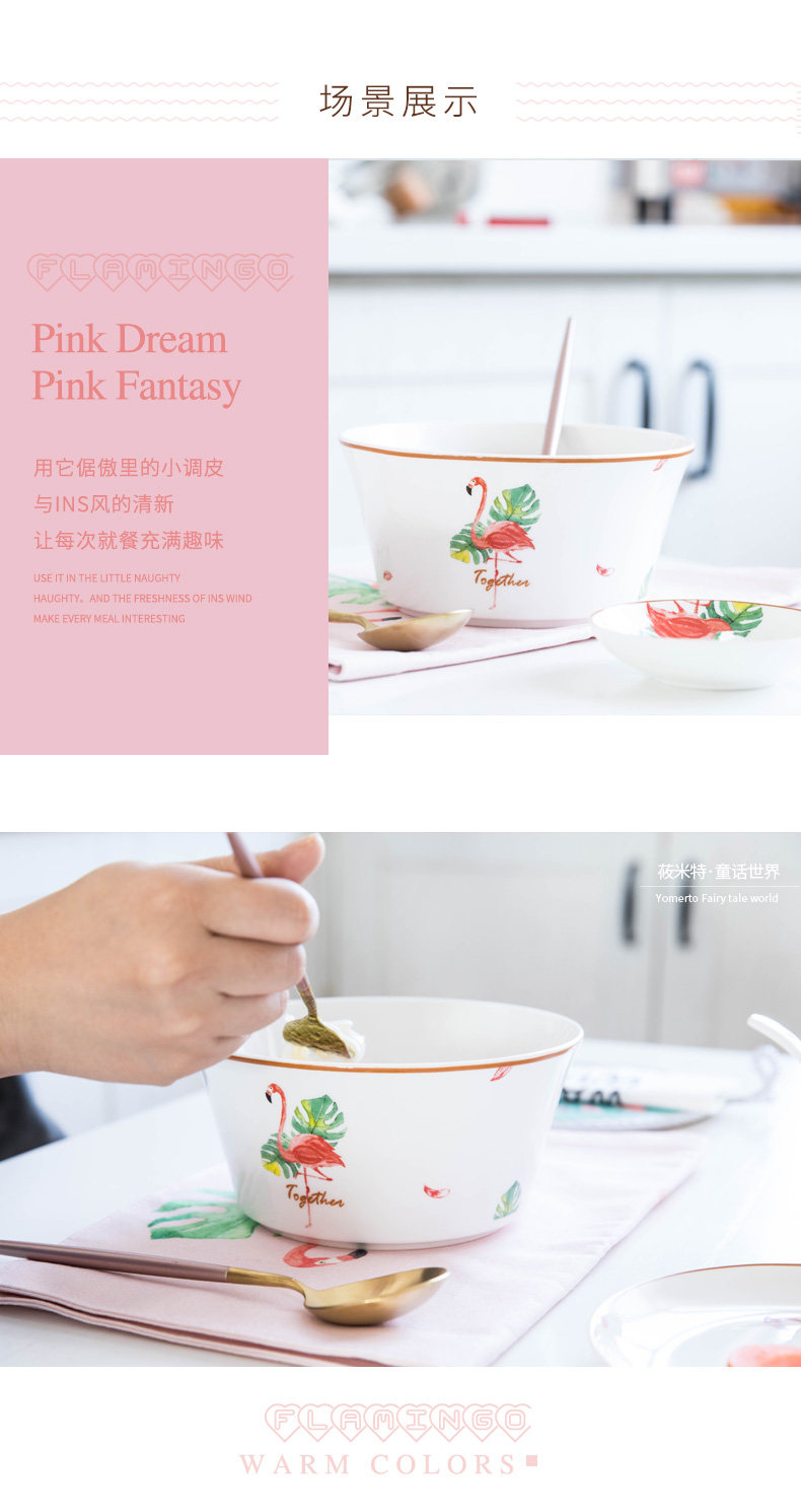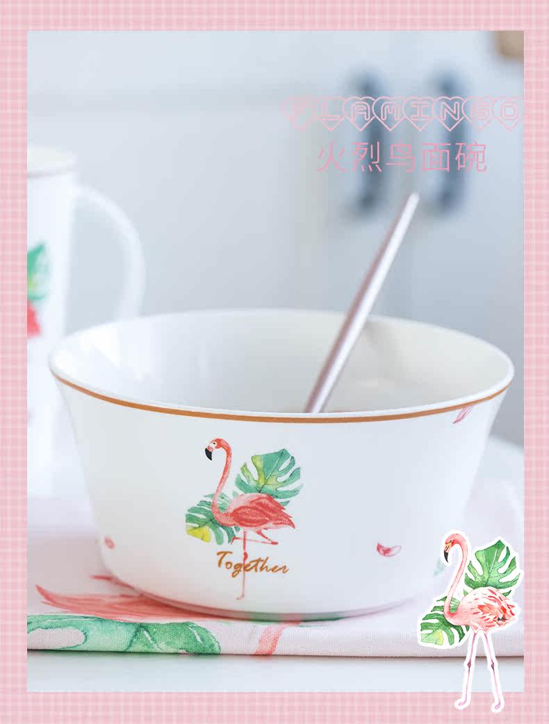 韩式碗家用6英寸碗大号米饭碗陶瓷火烈鸟餐具汤碗创意卡通泡面碗