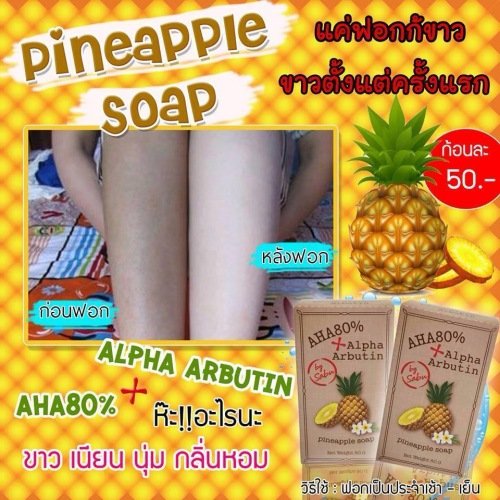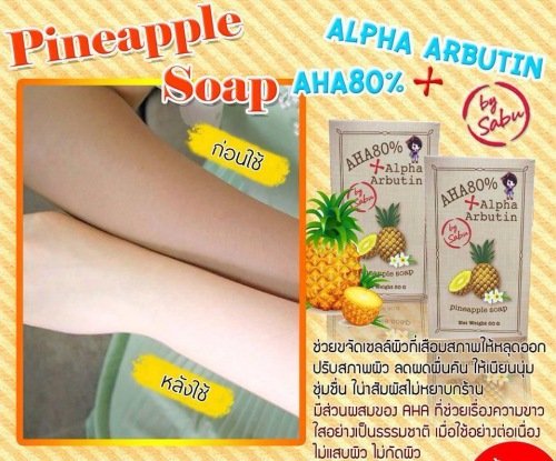 80G.Alpha Arbutin Skin Whitening Soap AHA 80% , Pineapple Soap Skin Lightening by SABU