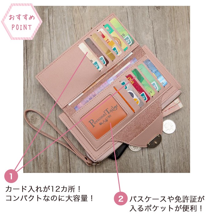 当店では、様々なタイプの財布があり、ノーブランドですが、大人気のエナメル素材や牛革のレザー素材、デニムもあり、高級感のあるクロコダイル型押しや、シンプルなタイプから多機能なポシェットタイプなど、長財布、二つ折り財布の種類も豊富で、外側に小銭入れがあるタイプや小銭入れなしのタイプもあり、レディースはもちろん、メンズ商品も多数取り扱っております。カード入れが沢山ある、コンパクトな薄くて大容量の財布も皆様から好評で、キッズ、ジュニアからミセスまで、幅広い年代の方から人気です。他にも、がま口やラウンドファスナー、スタッズ付き、ストラップ付きなどもお勧めです。お値段もお手頃な物が沢山あり、可愛い柄も豊富で、花柄、チェック、星柄、猫柄なども好評を頂いております。また、御希望で、財布への名入れも13文字までお入れすることができますので、お時間がありましたら、是非SHOP内を覗いてみて下さいませ。