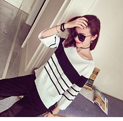 -. Feature : カジュアルボーダーニットとクロップドパンツの2点セットアップです。 / カジュアルにもオフィススタイル、デートシーンやフォーマルな場面にも使える便利なツーピースです。 / オールシーズン使用でき、トレンチコートやテーラードジャケット、ブルゾンやカーディガン何にでも合わせやすいデザインです。 / セットアップとしてはもちろん別々にも使用できる便利なアイテムです。ニットカットソーはスカートやガウチョパンツやスキニーデニム、アンクル丈パンツはワイシャツやシフォンブラウス、tシャツ、レースシャツと合わせるとまた違った雰囲気になります。 / 【サイズ】S: 着丈51cm バスト96cm ウエスト63~67cmM: 着丈53cm バスト100cm ウエスト65~69cmL: 着丈55cm バスト104cm ウエスト66~70cmXL: 着丈56cm バスト108cm ウエスト69~73cm サイズは目安です。ワンサイズ大きめの購入をお勧めします。