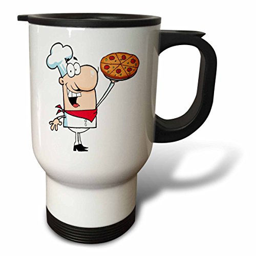 3dRose Funny Cartoon Pizza Pie Chef Travel Mug, 14-Ounce