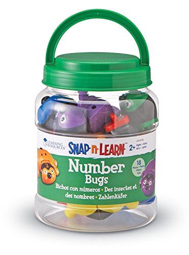 Introduces children to numbers, counting, addition, and color matching. Chunky, snap-together pieces are easy for little hands to manage. Each bug features dots on the back and corresponding numerals on the head for self-checking. 6 heads and 12 body pieces make 6 complete bugs.