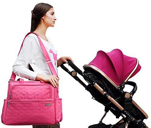 4 different carrying options: Shoulder bag,tote bag,Message bag and Stroller attachments to your stroller handle