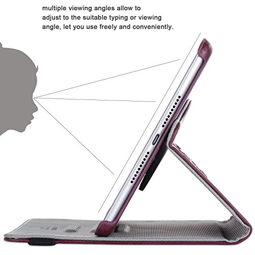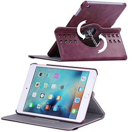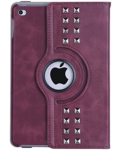 iPad Mini 4 Case, BENTOBEN Protective Case for iPad mini 4 (2015 Release)- Retro Studded Smart Cover with Auto Sleep / Wake Feature Faux Leather Magnetic 360 Degree Rotating Stand Case Cover, Wine Red