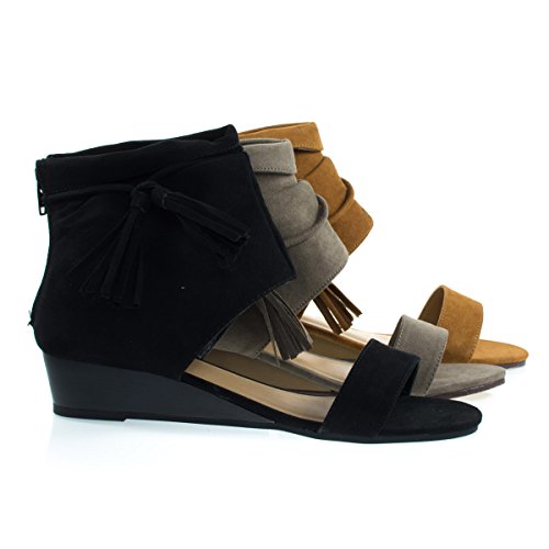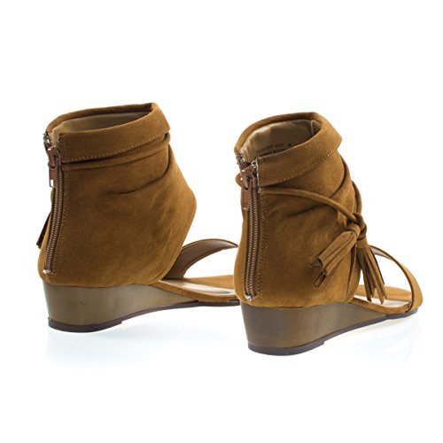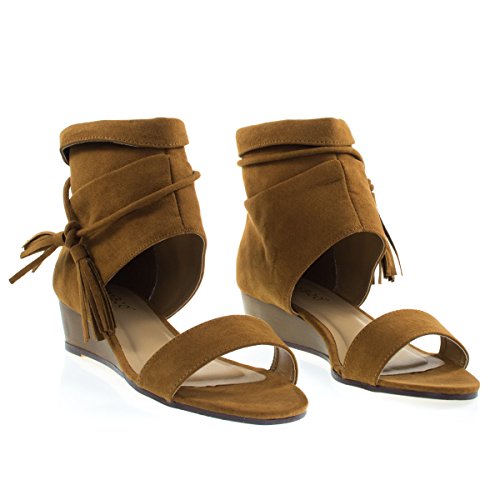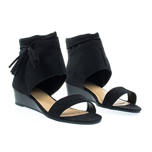 Binding : Apparel Product Description About This Shoes :These low wedge sandal features a single front strap, covered heel cuff that rises above the ankle with a knotted tassel and zipper closure. Brand - Bamboo Colors Available: Chestnut (brown) black, taupe (gray) Occasion: Casual Shoe Type: Heels - Open Toe Shoe Style: Platforms Wedges Inner Lining: synthetic Heel Height In Inches - 1.5 Heel Style - Wedge Toe Style - open-toe Platform Height In Inches - 0.25 Shaft Height In Inches - 4 Circumference Opening - n/a Strap Type - Sole - manmade All Man Made Material unless otherwise stated. Computer/Phone/Table monitors might show color differently because of its quality or calibration, we suggest you look at the photo in at least 3 monitors if you need exact color match of your shoes. 0