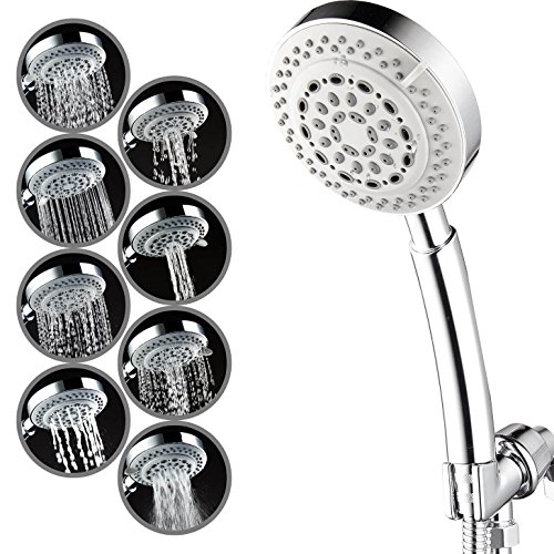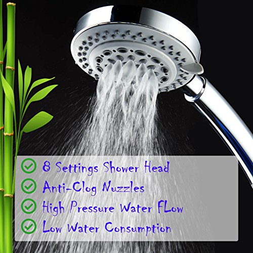 CaptainEco 8 Functions Hand Held Shower Head with 5-ft Flexible Hose - American Standard ShowerHead with Anti Clogging Nuzzles to create High & low pressure water output