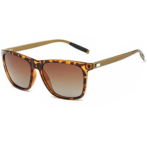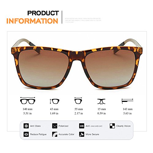 PROSHADE Classic Polarized Wayfarer Sunglasses Square for Men Women 55mm Driving Metal Arms Tortoise Frame Brown Lens