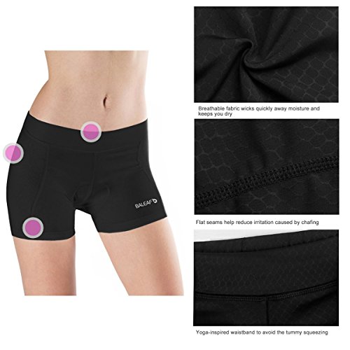 Product Description Baleaf Women's 3D Padded Cycling Brief Underwear Shorts is designed with stretchy, soft and breathable fabric. Special waistband design can avoid the tummy squeezing and offer you great comfort in the saddle. 0