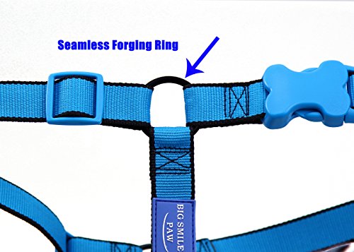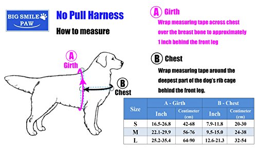 Studio : BIG SMILE PAW Publisher : BIG SMILE PAW Binding : Misc. Product Description Product Features: No Pull:two leash clips designed,the front clip on chest strap helps directional steering and discourages pulling,the top clip on back strap allows for a traditional leash leading,you will enjoy walking dogs with this harness Adjustable and Comfortable:3 adjustment points provide custom fit to your dog and the chest strap rests across your dog's chest which prevents gagging,choking and coughing Easy on and off: pull the chest strap over the head and belly strap goes around the belly, then a quick-snap buckle on the belly strap to make it easy on and off Size: **S-belly girth:16.5inch~26.8inch/42cm~68cm;chest girth:7.9inch~11.8inch/20cm~30cm; **M-belly girth:16.5inch~26.8inch/42cm~68cm;chest girth:9.5inch~15inch/24cm~38cm; **L-belly girth:25.2inch~35.4inch/64cm~90cm;chest girth:12.6nch~21.3inch/32cm~54cm Package content: 1 harness 0