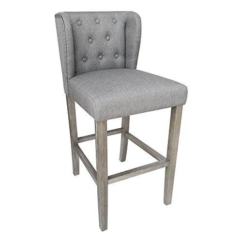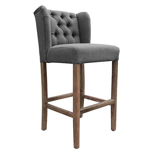 -. Title : Set of 2 Wellington Contemporary Wood/Linen Barstool - Gray Linen