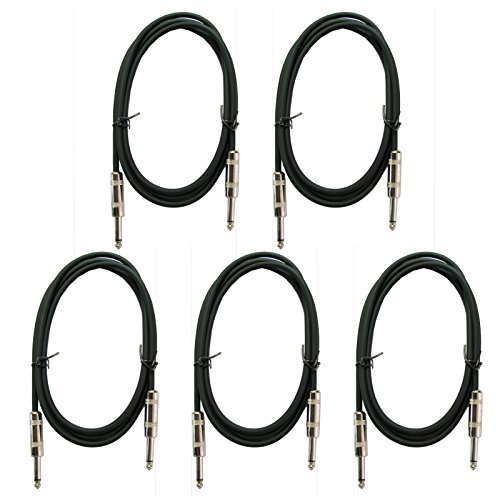 5 PACK: Instrument Acoustic Electric Bass Guitar Keyboard Patch Cable 1/4 Quarter Inch (20ft)