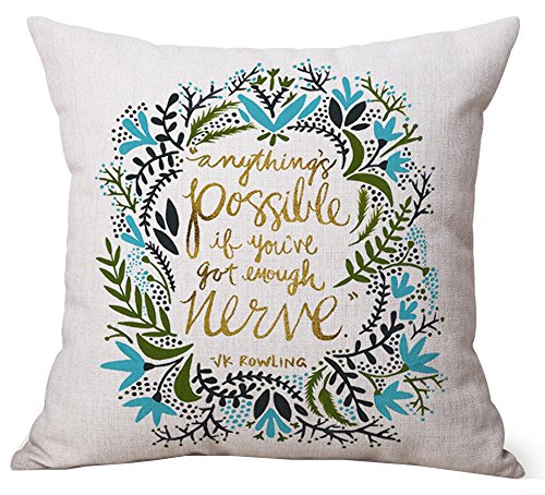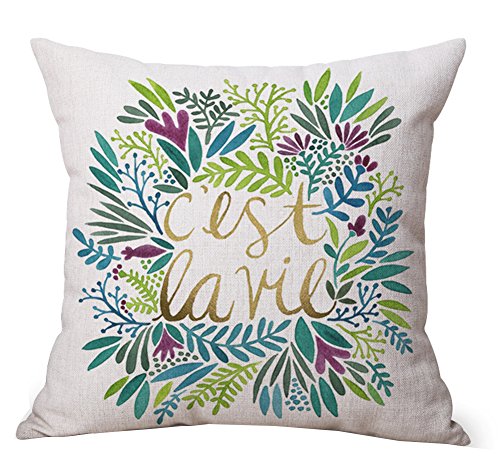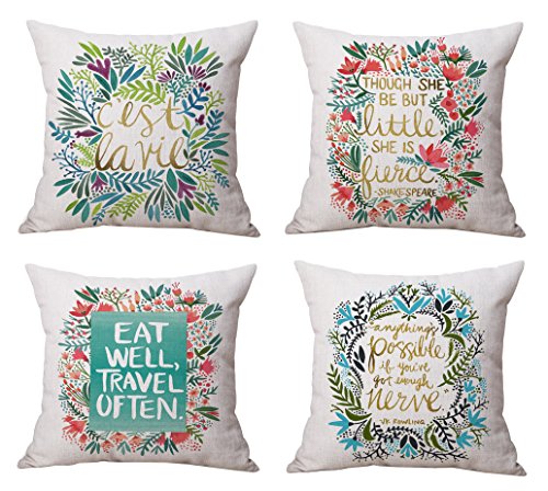 18 inch Flower Decorative Linen Pillow Cases Sofa Square Pillow Covers Set of 4 (Flower)
