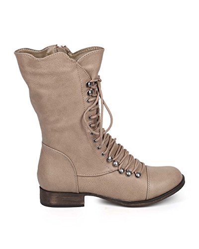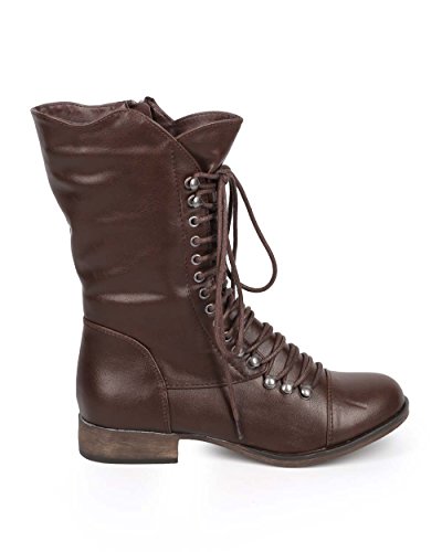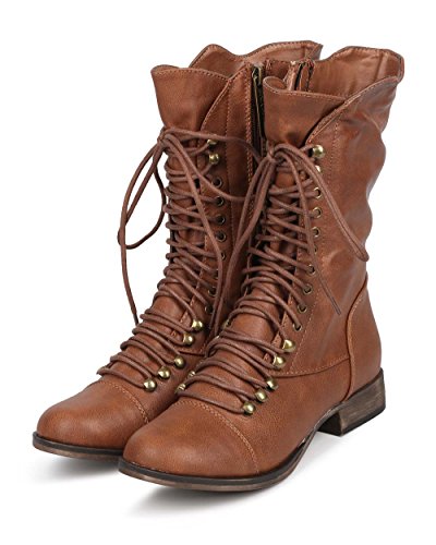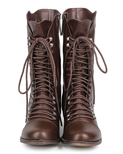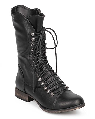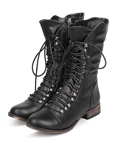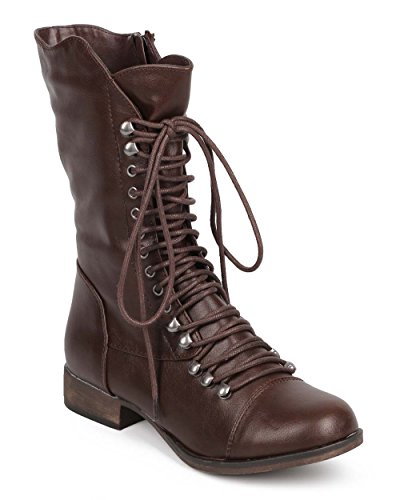 (Breckelles)/Women's/Boots/DIRECT FROM USA/Georgia 74 Women Military Lace Up Mid Calf Combat Boots