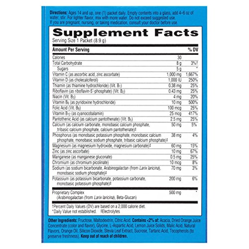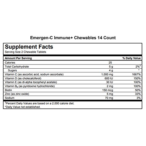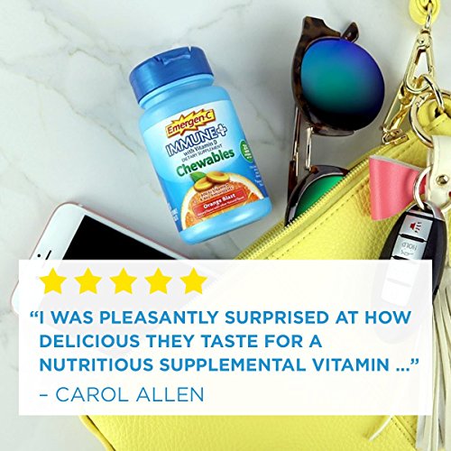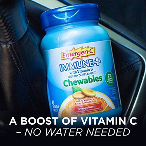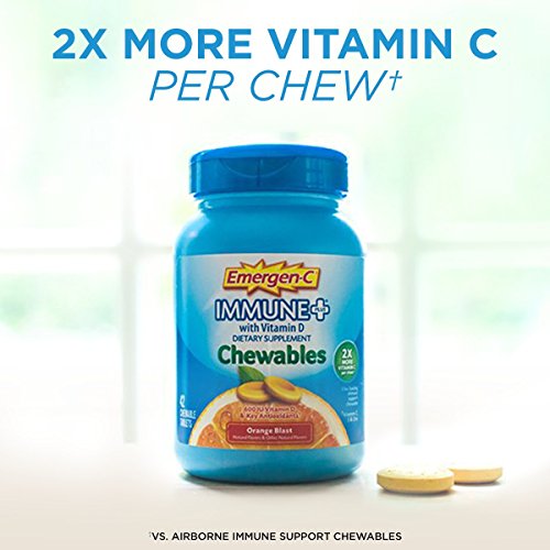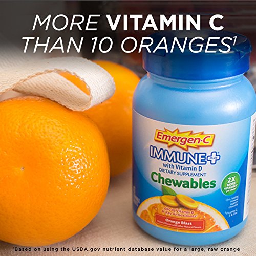 When you bite into an Emergen-C Immune+ Orange Blast Chewable, you will benefit from immune-supporting goodness with natural, delicious flavor! Each Chewable serving has more vitamin C than 10 oranges . It contains B vitamins to enhance your energy naturally and key antioxidants, vitamins C, E, and zinc to support your immune system*.