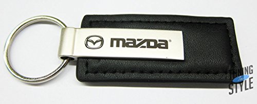 -. Title : Mazda Logo Etched Keychain BLACK LEATHER Chrome Key Fob Metal Keyring Lanyard