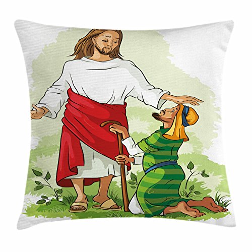 (Ambesonne)/Bedding Bath/Bedding/DIRECT FROM USA/Cartoon Throw Pillow Cushion Cover by Ambesonne, Healing a Lame Man Blessing and Compassion Rel...