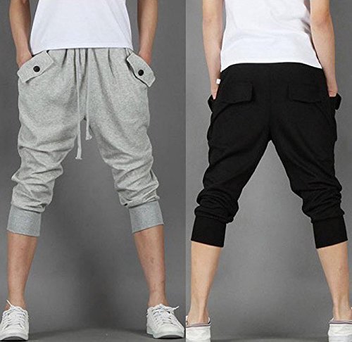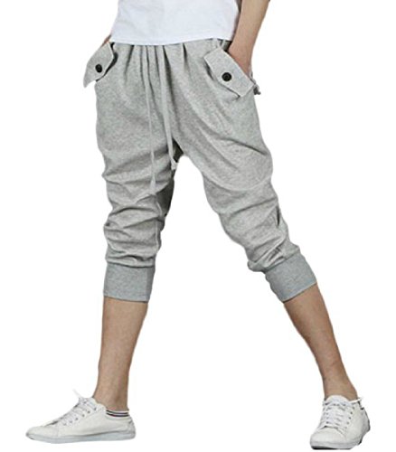 (On Dolce) 맨즈 스웨트 팬츠 7 부 버튼 부착 하프 팬츠 사루엘(Sarrouel) 팬츠 스포츠 웨어 짐 요가 댄스 실내복 룸 웨어 다목적 팬츠 MF007 (05 그레이
