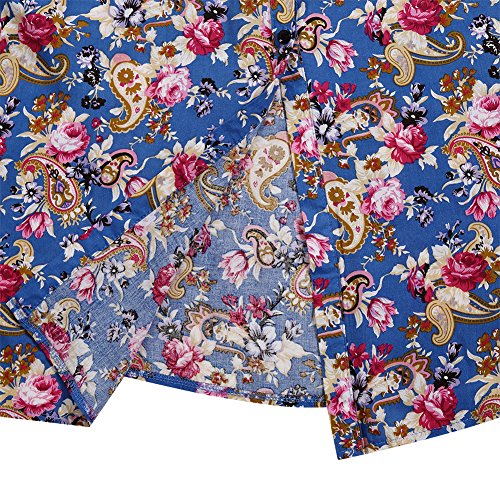 FEATURES: A Line, V-Neck, Short Sleeve, Vintage Floral Print, Buttons Up, Flowy Split Summer Long Dress