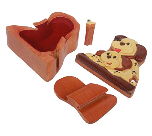 This Spotted Dog shape secret jewelry box can only be opened if you know the secret. Perfect gift for that special someone. Beautifully Hand Made Wooden Box with Embossed Spotted Dog on the lid. It has a secret locking device, although the big secret opening isn't all that difficult to figure out. It is brand new.