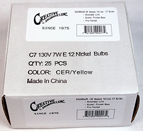 Box of 25 Light Bulbs -C7, Steady Burning - Opaque Yellow - 5 Watt - Candelabra Base -Great for Night Lights, Decorative Lights and Christmas Strings