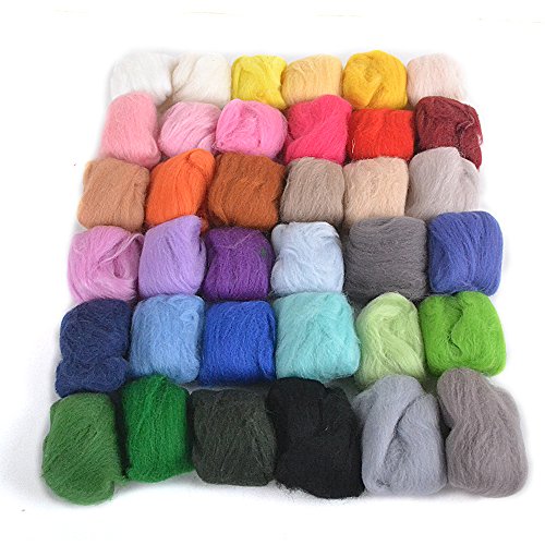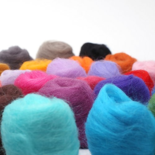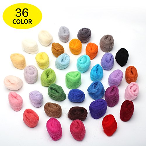 - Each package comes with 36 vibrant colors of wool fiber. Fluffy and soft, vibrant colors, ideal for hand-wool. Including the basic color: blue, green, red, orange, pink, yellow, grey blacks etc