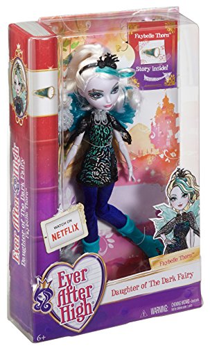 -. Binding : Toy -. Brand : Ever After High -. Color : multicolor -. EAN : 0783318080017 -. Feature : At Ever After High, the teenage sons and daughters of the most famous fairytales turn tradition on its crown when some decide to Choose Their Own Ever Afters! / The Ever After Royals -- like Faybelle Thorn, daughter of the Dark Fairy from Sleeping Beauty -- are excited to follow their prewritten destinies / She's ready to take the lead of the cheerleading squad in a sporty blue and sliver glitter-P.R.Int dress and solid blue leggings / Wicked cool accessories include a necklace, silvery bracelet ring, thorn branch headpiece and pompom-inspired purse / Turquoise high-top sneakers and her iridescent fairy wings are really something to cheer about -. Genre : fashion -. IsAdultProduct : 0 -. ItemPartNumber : CDH56 -. Label : Ever After High -. Manufacturer : Ever After High -. Model : CDH56 -. MPN : CDH56 -. PackageQuantity : 1 -. PartNumber : CDH56 -. ProductGroup : Toy -. ProductTypeName : TOYS_AND_GAMES -. Publisher : Ever After High -. Studio : Ever After High -. Title : Ever After High Faybelle Thorn Doll -. UPC : 787799363355 -. Warranty : 1 year warranty against manufacturer defects