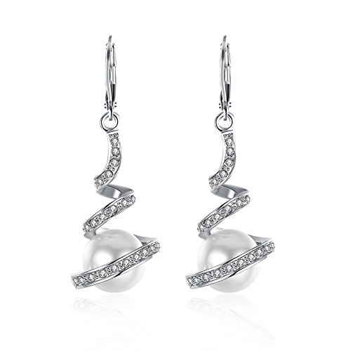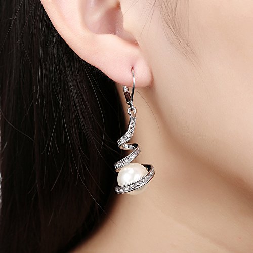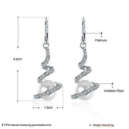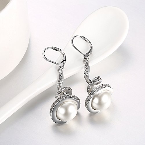Women's Classic White Gold Plated Cream Simulated Pearl Crystal Rhinestone Dangles Drop Bridal Earrings